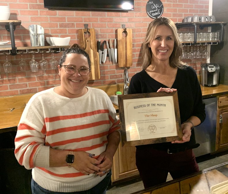 The Business of the Month honors for October presented by the Escalon Chamber of Commerce went to The Shop, at 1834 Main St., where a mixer was hosted on Wednesday evening, Oct. 22. Chamber Membership and Events Ambassador Miranda Powers was on hand and presented the certificate of appreciation to Shop owner Diana Scott. The Shop is a host site for a variety of gatherings and the mixer featured some beverages, sweets and individual charcuterie cups. The Shop’s motto is “There’s always something to celebrate” and it is a popular downtown destination for those special celebrations.