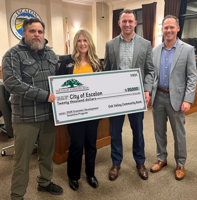 “Oak Valley Community Bank’s commitment reflects the strength of our local relationships and the shared belief that investing in small businesses is investing in Escalon’s future,” said Mayor Andrew ‘Andy’ Hagan. “We are grateful for their leadership and support.”