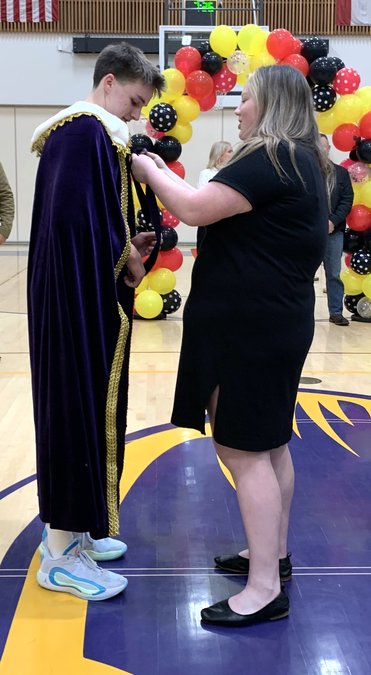 He received the crown, cape, flowers and congratulations at halftime of the varsity game, hosted in the Cougar Dome on Friday, Jan. 9.