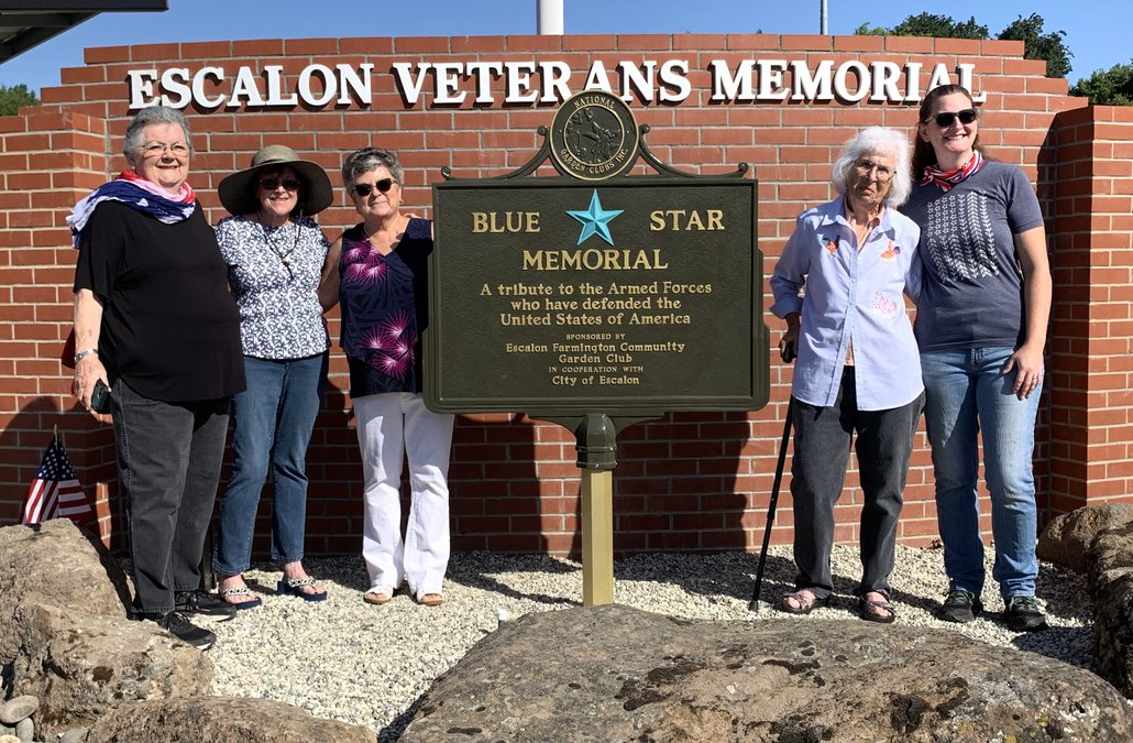 It was a day a very long time in coming, but Saturday, May 24 brought a satisfying conclusion to a special project, as the Escalon Farmington Community Garden Club formally dedicated its Blue Star Memorial marker. Situated at the Escalon Community Center adjacent to the Escalon Veterans Memorial, corner of Escalon Avenue and Arthur Road, a crowd gathered for the 9 a.m. dedication ceremony, with Garden Club Co-President Amanda Taylor serving as emcee. After an opening prayer from American Legion Post 263 Chaplain Casey Den Ouden, Taylor stepped up to the podium to offer some background. “The Blue Star program honors all men and women that serve in the United States Armed Services; the program began with the planting of 8,000 dogwood trees by the New Jersey Council of Garden Clubs in 1944,” said Taylor. “It was a living memorial to veterans of World War II and in 1945, the National Council of State Garden Clubs, which is now considered the National Garden Clubs, Incorporated, adopted this program and began a Blue Star highway system that covers thousands of miles across the continental United States, Alaska and Hawaii.”