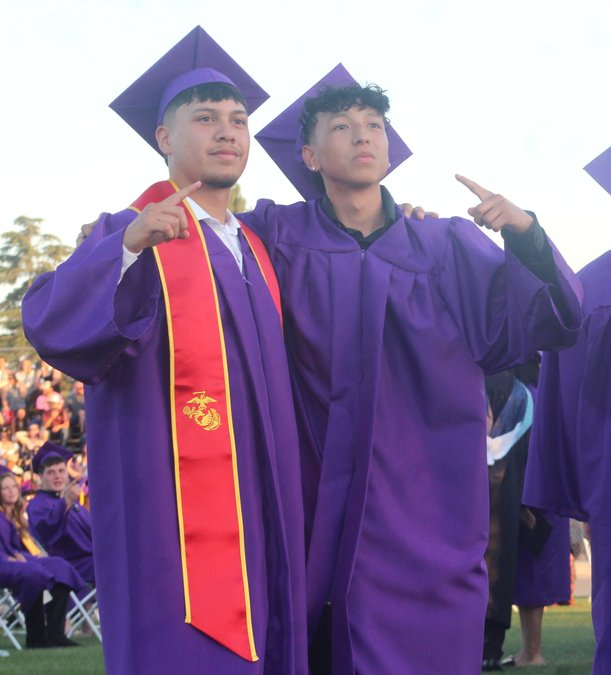 Thirteen years of work – including a couple severely impacted by the pandemic – came to fruition for over 200 Escalon High School seniors on Friday night, May 30. The Class of 2025 entered Engel Field as Cougars and left as alumni, with their graduation ceremony the 105th commencement in the history of EHS. Principal Jason Furtado issued the welcome with senior classmates Cortney Ball and Daniel Adams then taking the stage to perform the National Anthem. Senior Class President Ryan Murphy also offered some thoughts to the crowd. “Standing here on this field tonight, it is hard not to point back to the last time this group of kids were sitting in the same seats at our eighth grade promotion; the only difference was that we had a mask on, were spaced six feet apart and we all had little certainty about what high school held for us,” Murphy said. “We entered our high school careers at one of the most difficult times in history and, looking back, I wouldn’t have wanted it to go any other way. Because of this hardship, the Class of 2025 was able to show who they are; a strong, resilient group of hard workers who are able to adapt to a changing world and overcome any challenges that follow … we have learned how to overcome adversity and win as a team.” Meanwhile, sharing the stage on Friday were co-Valedictorians – and best friends – Emma Berchtold and Kali Castellanos to give their address.