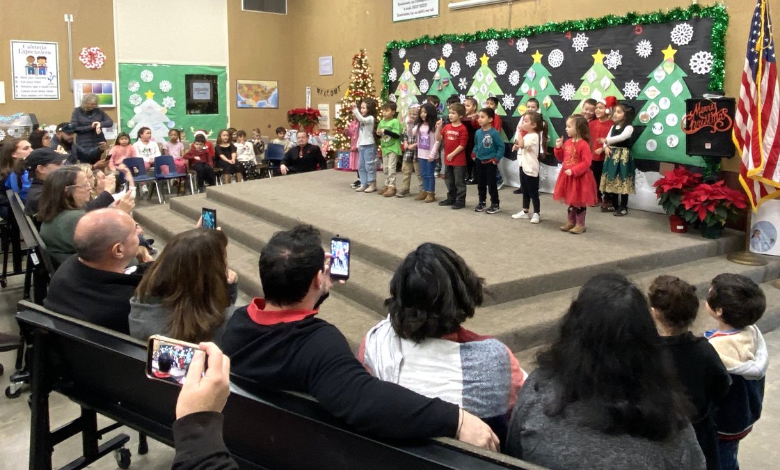 Under the direction of Mr. Charles Farwell, one of Escalon Unified School District’s TK-fifth grade music teachers, Farmington Elementary students from TK/kindergarten through fifth grade performed a variety of festive holiday songs to “the delight and appreciation of parents, guardians, and extended family members,” said Principal Dr. George Megenney.