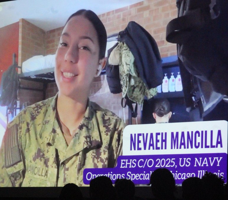Special guest speaker for the program was Gunnery Sergeant Rafael Felix, United State Marine Corps. He was a 2103 EHS graduate and enlisted in the Marine Corps in August of 2013. His service has included tours in Iraq in 2016, assignments in Japan, Korea and Taiwan and in 2018, attended Counterintelligence training.