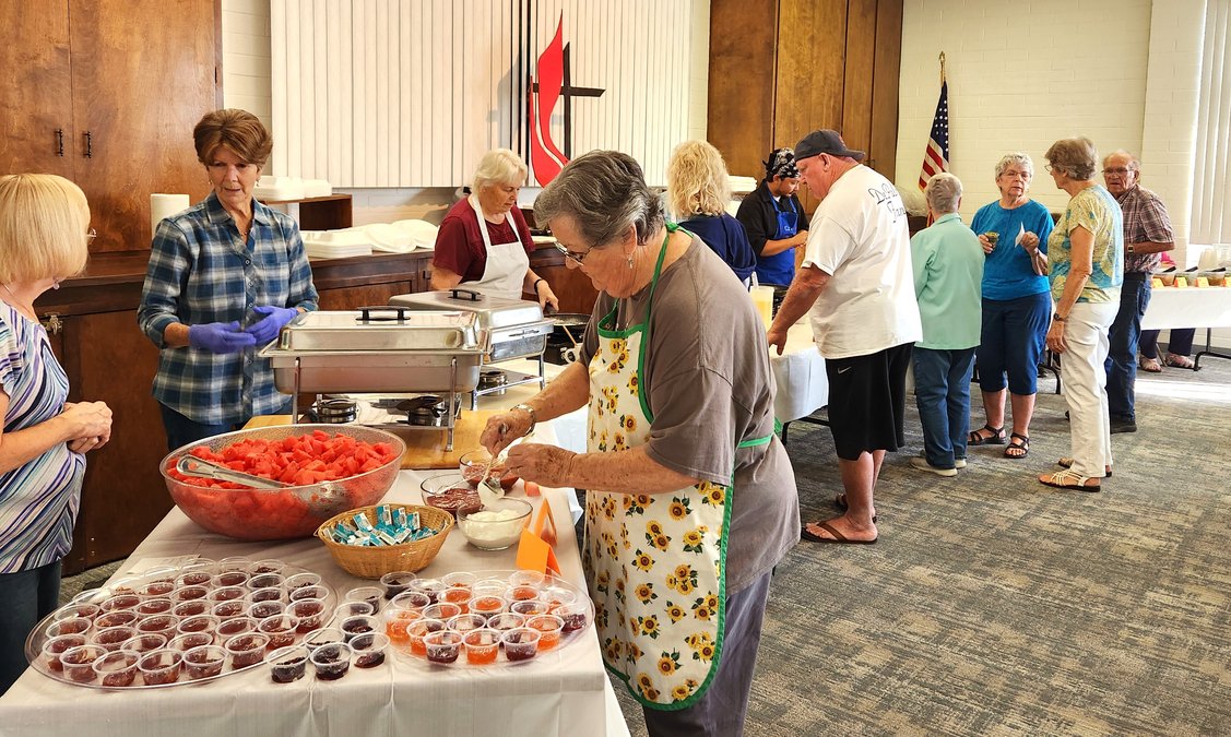 Saturday night, Sept. 27 featured the traditional ‘build your own omelet’ dinner hosted at Escalon United Methodist Church along Jackson Avenue in Escalon. Here, workers put the finishing touches on the buffet line while the first customers line up to have their omelets freshly cooked with the ingredients they chose to have inside. Organizers said it was a successful event and now they are gearing up for the 28th annual Holiday Bazaar. The bazaar is set for Saturday, Oct. 25 from 9 a.m. to 3 p.m., featuring plenty of handmade crafts, gifts and holiday items, homemade jams, jellies, frozen, ready-to-bake pies and more. The day also features a soup and pie lunch.