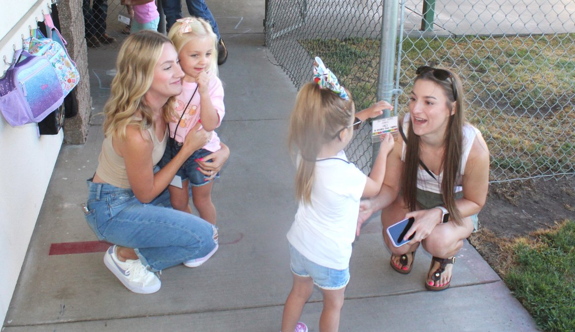 Parents Ryan and Amber Shepherd were dropping off daughter Zoey, 4, to start TK, transitional kindergarten, at Dent.