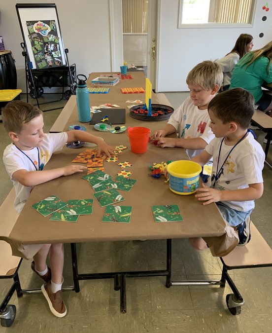 Each day started with all attendees gathering for singing songs and a brief time of worship, with the kids then getting into their age groups to move on to the individual stations. Those ranged from arts and crafts to outdoor games, snack time to story time.