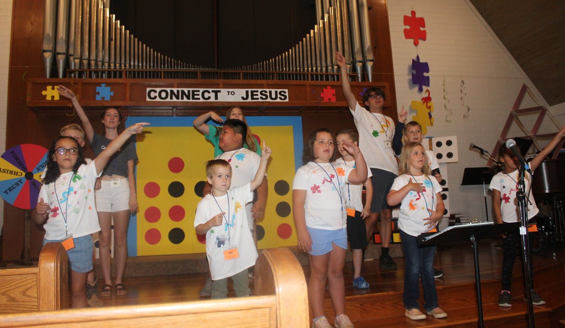 The special Closing Program on Friday featured a greeting and opening prayer from Pastor Onsager, who also gave a Mission report. Then the youngsters took to the stage for a number of musical presentations, each grade level working on a few songs during the week to perform. All attendees joined on stage for the final three songs to close out the week. A free lunch of hot dogs, chips and cookies was then served for the VBS kids, volunteers and all those attending the closing program.
