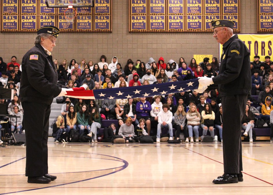 Designed to provide a forum for students to learn more about Veterans Day and the sacrifices veterans and their families have made through the years, the gathering also featured the ceremonial folding of the American flag with a detailing of what each fold signifies.