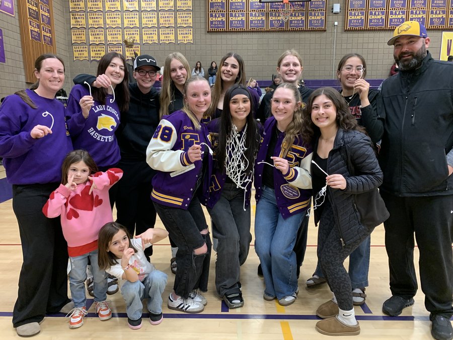 There was plenty of celebrating in the Cougar Dome on Friday evening, Feb. 13, as the varsity boys basketball team wrapped up a solid season in Trans-Valley League play, the varsity girls cut down the net after the game to mark their league title, and senior recognition was given for the basketball boys and the EHS cheerleaders.