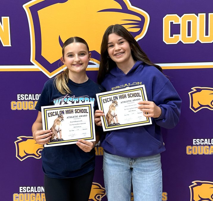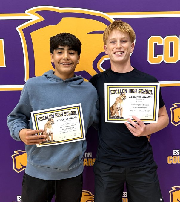 The freshman football and volleyball team awards were presented during the fall sports awards night at Escalon High. Taking home the top honors for football were Lucas Trejo, Best Offensive Player and Ty Caton, Best Defensive Player. The volleyball honorees were Ryan Killingsworth, MVP Defense and Aubrey Anderson Castro, MVP Offense.