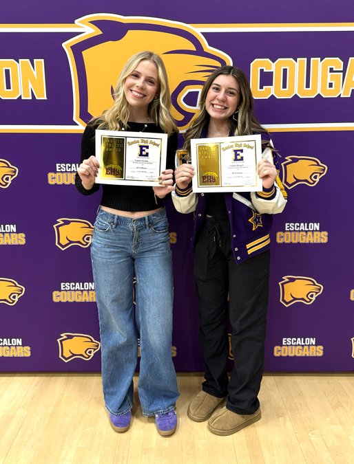 Top honors for the varsity girls volleyball team were presented recently at the Escalon High School Sports Awards Night. Recognized with the Most Valuable Player – Offense award was Emma Strong, left, and receiving the Most Valuable Player – Defense award was Emma Rangel.